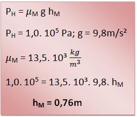 Portanto, podemos concluir que uma coluna de mercúrio, que possui uma altura de 76 cm, irá aplicar uma pressão de 1,0 atm.