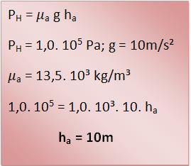 Portanto podemos concluir que uma coluna de água, que possui uma altura de 10m, irá aplicar uma pressão de 1,0 atm.