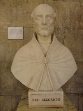 Ceccardo possui o mesmo significado de Francisco. A vida desse religioso mistura-se entre história e lenda, derivados principalmente da devoção popular. Viveu no século nove e seu ano de nascimento se aproxima dos 800. Educado dentro dos valores cristãos, tornou-se bispo ainda muito jovem.