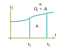 Não é possível calcular a quantidade de carga elétrica transportada através da corrente em um determinado intervalo de tempo delta t, pela expressão Q = i . delta t, pois i é inconstante.
