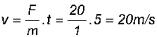 Sob a ação de uma força resultante constante de intensidade 20N, um corpo, de 1,0kg, parte do repouso no instante t = 0. Calcule o módulo do impulso da resultante, desde t = 0 até t = 5,0s, e a velocidade final.