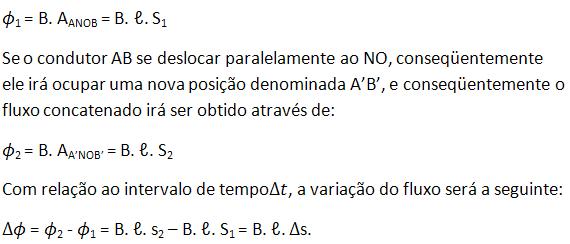 Ao se deslocar com certa velocidade, o condutor AB irá fazer com que a espira varie e conseqüentemente surge uma força eletromotriz induzida no condutor.