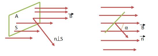 Como podemos observar na ilustração acima, a superfície da espira, forma um ângulo α junto com as linhas de indução, pois uma espira com a área A foi colocada dentro de um campo magnético uniforme.