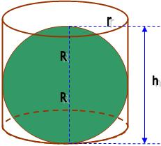A esfera inscrita num cilindro possui r como raio e h como altura.