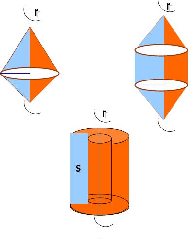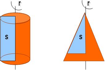 O sólido de revolução é formado pela rotação de 360º presente numa área lisa S em volta de uma reta r.