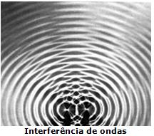 Vejamos uma figura a seguir, onde as ondas circulares que se propagam na superfície da água de uma cuba, se superpõe, estabelecendo assim o fenômeno da interferência.