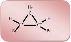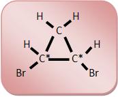 A forma trans é assimétrica, havendo assim dois trans-1,2-dibromocclopropano: dextrogiro e levogiro.
