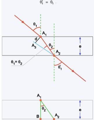Com base no esquema acima, podemos dizer que o desvio lateral é medido através da distância existente entre as retas possuindo os raios incidentes e o raio emergente. No esquema acima para podermos determinar o desvio lateral d, devemos considerar o triângulo