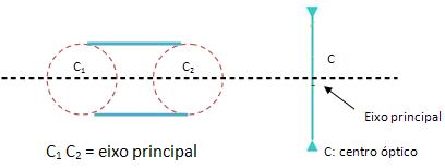 É importante lembrarmos que o centro óptico de todas as lentes delgadas é a intersecção do eixo com a própria lente.