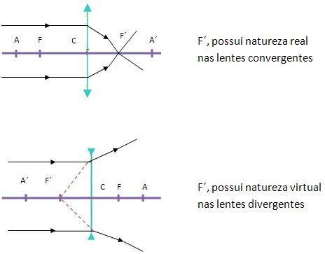 • Qualquer raio de luz paraxial que incidir em uma lente paralela ao seu próprio eixo, irá emergir em uma direção, que passa pelo foco imagem principal F´.