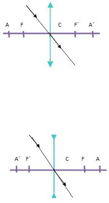• Qualquer raio de luz que incide, passando pelo centro óptico C, irá atravessar a lente sem se desviar.