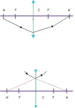 • Qualquer raio de luz paraxial que incidir na lente em uma direção que passa por A, irá emergir em uma direção que passa por A´.