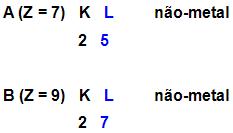 Como seria a fórmula mais provável do composto formado a partir de um elemento A, com número atômico 7, combinado com um elemento B, com número atômico 9?