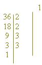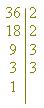 3º) na linha de cada fator primo vamos colocando os produtos dele pelos números já colocados nas linhas de cima.