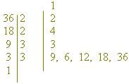 D(36) = { 1, 2, 3, 4, 6, 9, 12, 18, 36}