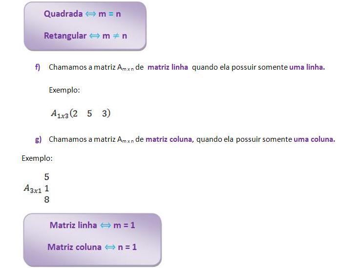 e) Chamamos de retangular a matriz Am x n se o número de linhas é for diferente do número de colunas.