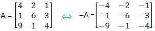 Matriz Oposta Por Redação31/05/2012 às 17:45 6 – Matriz Oposta A matriz oposta da matriz A é aquela que possui elementos opostos correspondentes ao da matriz A. A matriz oposta de A = (aij)m x n é a matriz – A = (– aij) m x n. Exemplo: