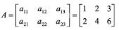 Cada elemento de uma matriz é localizado por dois índices: aij. O primeiro indica a linha, e o segundo, a coluna.