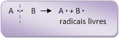 Esta ruptura acontece através da ação da luz, do calor ou de reativos que contenham elétrons desemparelhados, como o oxigênio e produtos de decomposição de peróxidos. Comum acontecer na fase gasosa.