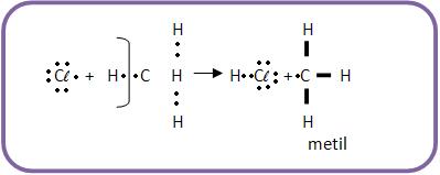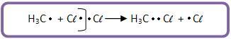 O radical metil ataca uma molécula de Cl2. A reação continua em cadeia.