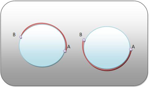 Considere uma circunferência onde são dados dois pontos A e B. a circunferência irá se dividir em duas partes denominadas arcos, onde nos pontos A e B são considerados extremidades desses dois arcos.