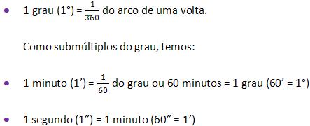 Quando A e B se encontram ao mesmo tempo, um desses arcos é denominado arco nulo, pois tem por medida 0° e o outro é denominado arco de uma volta, pois tem por medida 360°.