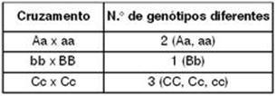 Portanto: 2 x 1 x 3 = 6 genótipos