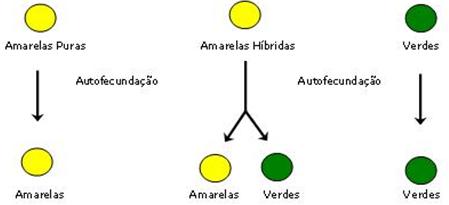 Por exemplo: Mendel observou que as ervilhas de sementes verdes são sempre puras, enquanto as de sementes amarelas podem ser puras ou híbridas.