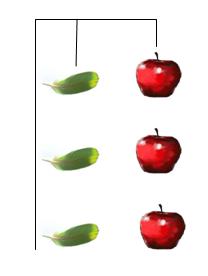 | A pena e a maçã têm massas diferentes, porém elas em queda livre caem com a mesma aceleração. |