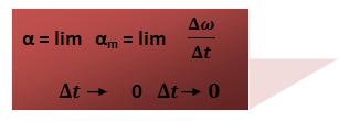 Essa aceleração é considerada um limite de até onde a aceleração escalar angular média (αm) vai, quando seu intervalo de tempo tende a zero.