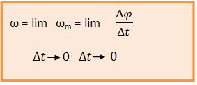 Quando o intervalo de tempo (∆ t) propender para zero, a velocidade escalar média ω_m também irá tender-se a um limite que é definido como a velocidade escalar angular instantânea (ω).