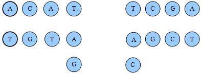 Vejam na cadeia acima que todas as bases estão emparelhadas, apenas o T, que está entre o G e o A está mais distante, e no outro filamento, na mesma direção que o T, está o G ocupando o lugar do A.
