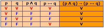 Portanto, (p Λ q) → (p ↔ q) é uma tautologia, por isso (p Λ q) ⇒ (p ↔q)