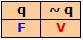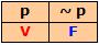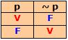 O conectivo não e a negação de uma proposição p é outra proposição que tem como valor lógico V se p for falsa e F se p é verdadeira. O símbolo ~p (não p) representa a negação de p com a seguinte tabela-verdade: