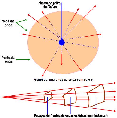 Um fósforo aceso (fonte luminosa puntiforme), dentro de um meio homogêneo, isótropo e transparente é capaz de emitir uma onda luminosa esférica.