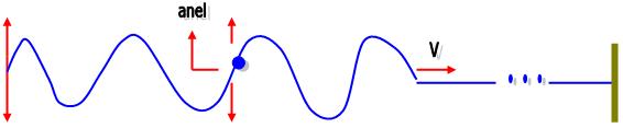 Suponhamos que uma pessoa esteja provocando um trem de ondas senoidais em uma corda elástica muito comprida, onde uma de suas extremidades está presa em uma parede, como nos mostra a figura abaixo: