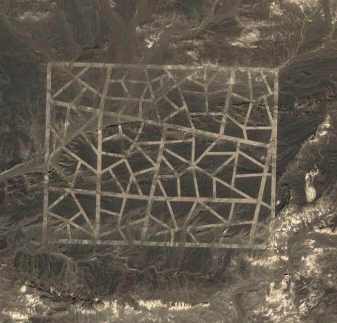 Estas misteriosas linhas foram encontradas no deserto da província de Gansu Sheng. Não existem muitas informações registradas sobre o achado, mas alguns registros afirmam que este mosaico teria sido produzido no ano de 2004. Teorias que circulam pela internet afirmam que este terreno seria utilizado para fins militares.