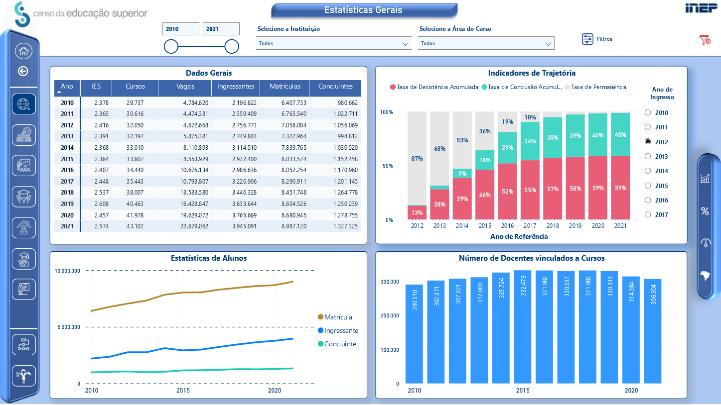 O Instituto Nacional de Estudos e Pesquisas Educacionais Anísio Teixeira (Inep) lançou nesta última semana, no dia 27 de dezembro, um novo Painel de BI (Business Intelligence) com uma série de dados do Censo da Educação Superior. De acordo com as informações que foram divulgadas pelo Instituto, o site apesenta as principais estatísticas e dados relacionados ao ensino superior brasileiro.