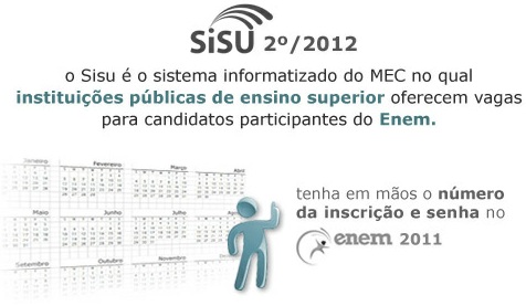 A seleção do Sisu é feita com base nas notas do Enem e, neste segundo semestre de 2012, o processo seletivo selecionará candidatos para ingresso em cursos com vagas no 2º semestre do ano letivo de 2012.