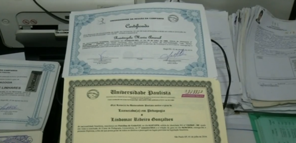 Nas buscas que foram feitas na casa do dono da instituição a polícia encontrou computadores, impressoras e o material utilizado para imprimir os diplomas falsificados.