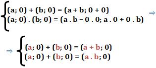 Podemos concluir que em relação à definição, quando aplicamos a adição ou a multiplicação na forma (a; 0) e (b; 0) recusamos o ( ; 0) e calculamos somente a soma ou o produto dos números reais a e b.
