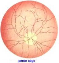O ponto cego é a área onde as fibras de várias terminações nervosas se juntam para constituir o nervo óptico.