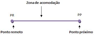 Quando um objeto é visto com nitidez, significa que ele esta situado na região existente entre o ponto próximo e o ponto remoto do olho. Essa região é chamada de zona de acomodação ou intervalo de visão distinta.