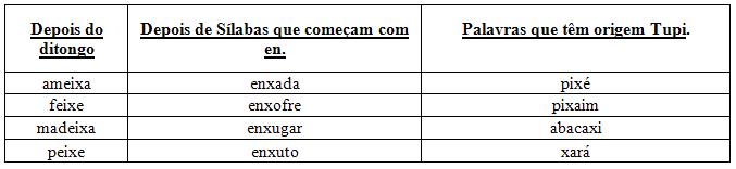 Depois de um ditongo: é o caso de baixo, caixas, feixes, ameixas.