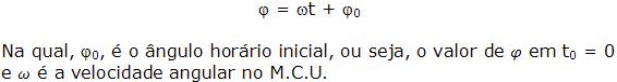 É importante lembrarmos que P faz o M.C.U, onde o ângulo horário é dado em função do tempo t através da expressão: