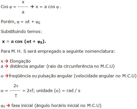 O Movimento Harmônico Simples (M. H. S) é considerado todo movimento retilíneo e oscilatório, onde a abscissa x (denominada elongação) altera com o tempo t, conforme a função do tipo:
