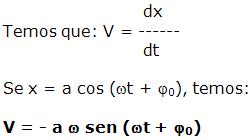Função de velocidade escalar no M. H. S.: V = f(t)