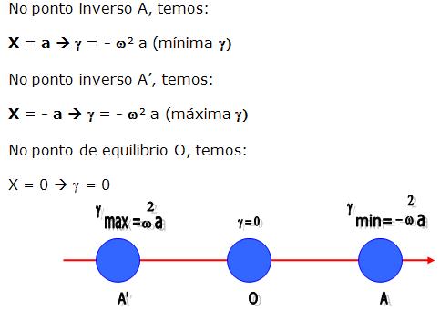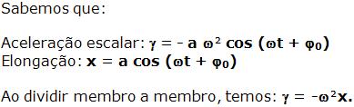 A aceleração escalar no M.H.S é proporcional à elongação com o sinal invertido, onde o coeficiente de proporcionalidade é o quadrado da pulsação.