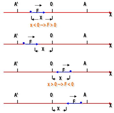 Quando x = 0, ou seja, móvel no ponto 0, tem-se que F = 0, com isso dizemos que o ponto 0 é a posição de equilíbrio da partícula.