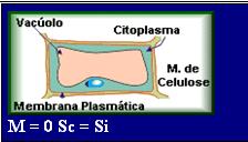a) As células vegetais mergulhadas em ambiente hipotônico (por exemplo, água destilada) estarão com seu volume máximo, ou seja, as células estarão túrgidas e a resistência da membrana celulósica (M) também será máxima.